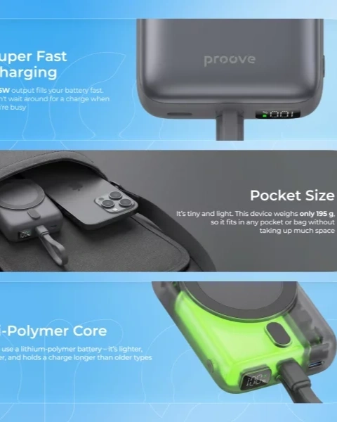 The 10000 mAh battery allows you to charge a smartphone 2–3 times while maintaining a compact size and lightweight design. This makes it convenient for daily use and travel.