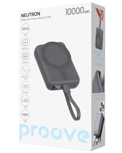 Battery capacity: 10000mAh; maximum power: 22.5W; magnetic ring; LED display; compact size; built-in Type-C cable; fast charging.